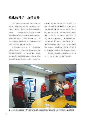 正建議」一文,明確地指出了當時中央災害應變 防災警報系統的重建,則是在成立防災情資群的 變中心組織架構修正建議」這份文件,調整組織運作架構及工作職掌。其中,將