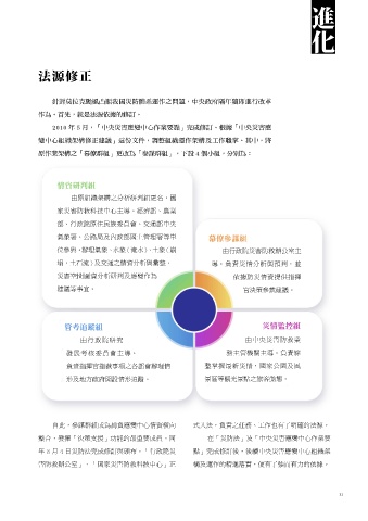正建議」一文,明確地指出了當時中央災害應變 防災警報系統的重建,則是在成立防災情資群的 變中心組織架構修正建議」這份文件,調整組織運作架構及工作職掌。其中,將