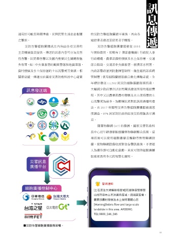 知而非一般訊息。這種細胞廣播服務技術不須知 供災防告警訊息的服務,並將此通訊方式列為新