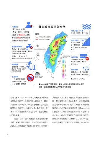 圖資,協助瞭解整體災情的空間分布與規模。 2015 年蘇迪勒颱風應變,國家災害防救科 ■蘇迪勒颱風應變期間,利用社群協防蒐整各