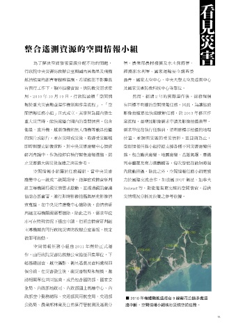 報於重大災害勘查運作機制與作業流程」,「空 有目標不明確的空間情蒐任務。因此,為讓協助