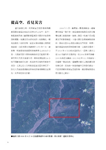 地崩塌。自從美國太空總署於 1972 年 7 月,發 操作衛星完成的即時取像作業,支援防災需求。